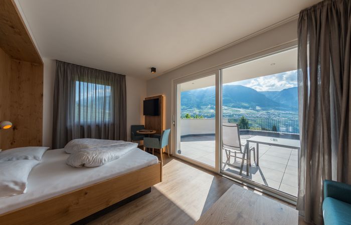 La camera doppia panoramica si trova al terzo piano ed è dotata di una grande terrazza sul tetto di circa 15 m², divano, TV satellitare, telefono e cassaforte e un bagno con cabina doccia, WC, bidet e asciugacapelli.